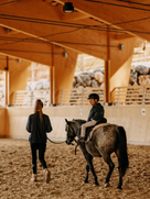 Own riding stable with indoor riding arena for riding lessons, pony rides and NEW: completing riding badges.